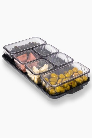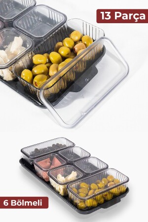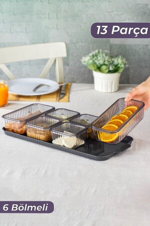 6 Bölmeli Kare Kapaklı Tepsili Lüks Kahvaltılık Modern Sunum Seti Ve Saklama Kabı TYC00811401678