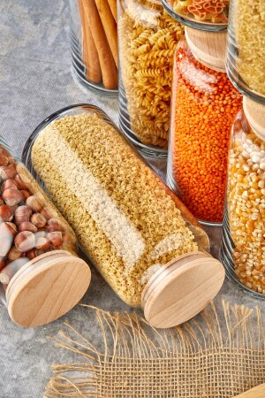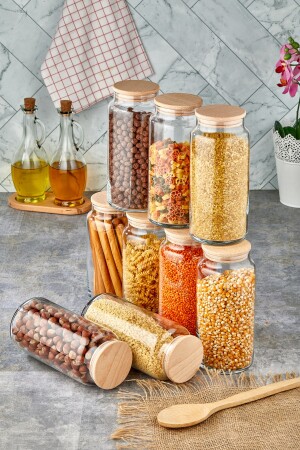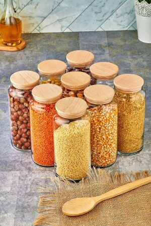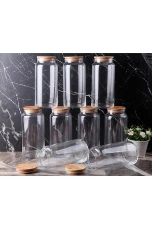 MNZ-1.3 Lt وعاء زجاجي مع غطاء فراغ خشبي مجموعة من 9 1300 مل G2736-9-t