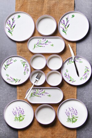طقم الفطور المجمّع من سلسلة 14 قطعة من اللابندلة من الطبيعيّة الكوتاهيا السيراميكية من الدرجة الأولى. محتويات الحزمة: 6