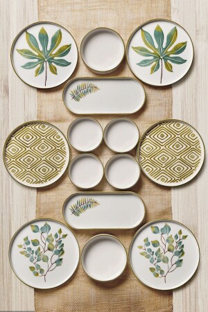 43 Parça Modern Gold Green Kahvaltı Takımı