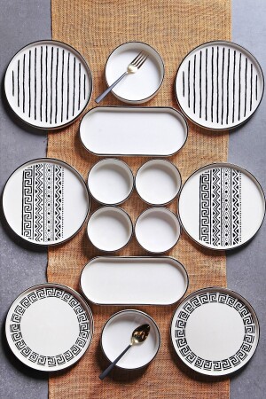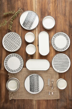 64 Parça 12 Kişilik Platin Modern Krem Kahvaltı Takımı