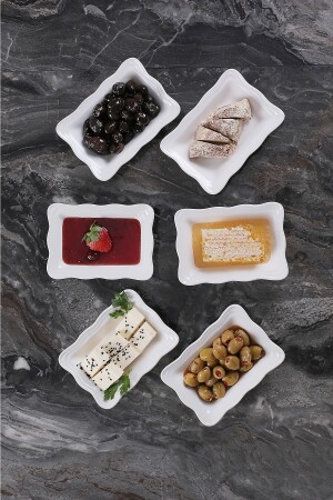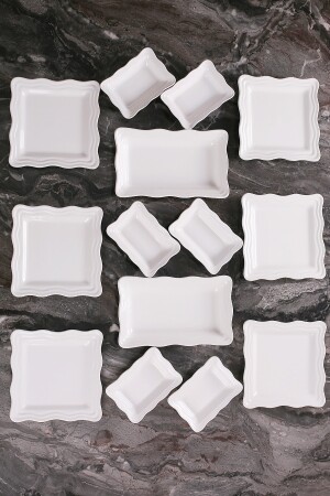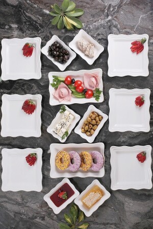 MNZ-14 قطعة Seranat الإفطار مجموعة لـ 6 أشخاص الأبعاد البيضاء: 6 أطباق الكعك: 19x19x2cm 6 أطباق الإفطار: 14x10