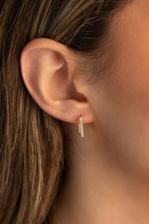Altın Halka Küpe 1.5 Cm Sarma Form Taşlı