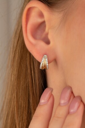 Altın Halka Küpe 1.5 Cm Sarma Form Taşlı