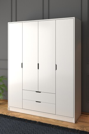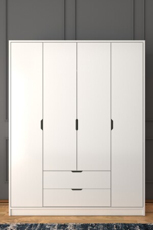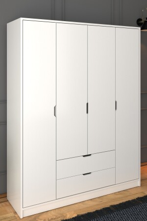 MNZ-140 سم مادة بيضاء 4 أبواب 2 جرافات الملابس الخزانة - خزانة الملابس ÇD003