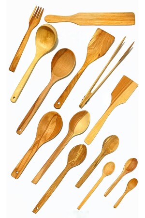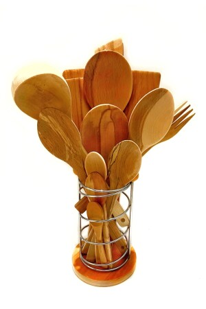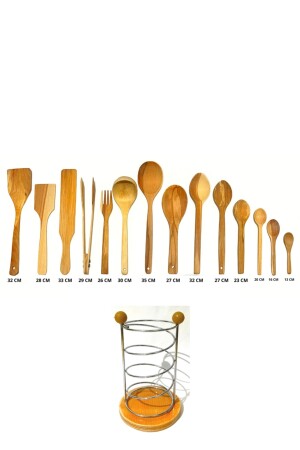 MNZ-15 قطع زيت Öz Beech خشب ملعقة الخشب الخشبية العصا الخدمة اللادل الخشبية الشوكة أدوات - مع منصة معدنية YNGN15
