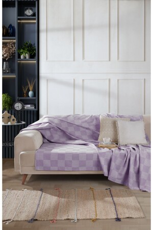 MNZ-16 الألوان متعددة الأغراض غطاء الأريكة المزدوجة 220 × 230 سم - نمط لوحة الشطرنج