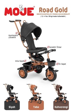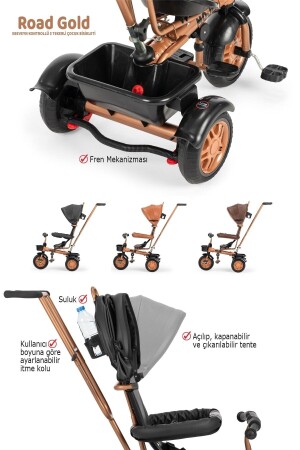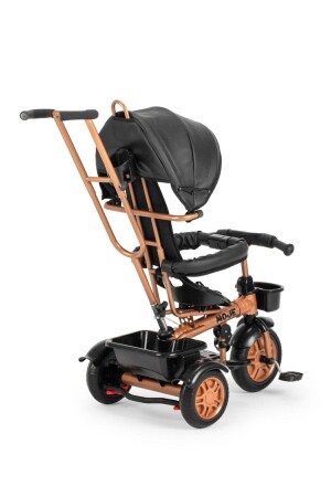 127 Panda Üç Tekerlekli Tenteli Ebeveyn Kontrollü Bisiklet Çocuk Bisikleti Kahverengi 127A