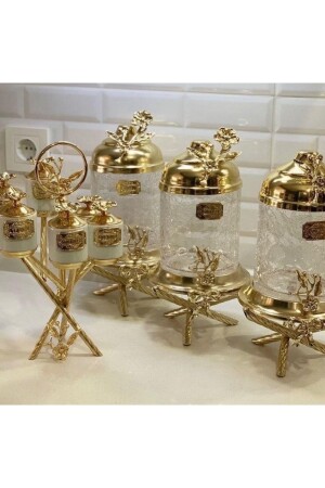 12'li Kapağı Kendinden Kaşıklı Ve Etiketli Baharatlık Seti 300 ml Gold Etiketli Cam Baharat Takımı