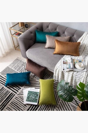 MNZ-2-قطعة خردل صغيرة البومبوم رمي غطاء وسادة، نظرة السلمون، 2 قطع 30 X 50 سم