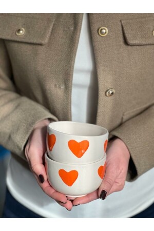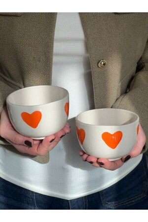 MNZ-2 PACK ORANGE HEART COOKIE BOWL - قطر 10-5 سم - ارتفاع 8-5 سم / يمكنك إضافة لون إلى ليلةك وإثارة لونك بالوعاء