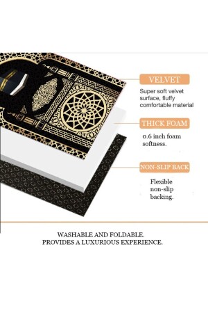 مقلاة MNZ-Soft Ultra Thick Light Foldable Prayer Rug - يتم بيعها كمجموعة من 3 مع ورقات الصلاة Velvet و 99 Pearl Vav. ضخمة إضافية: