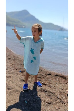 %100pamuklu Müslin Bürümcük Kapüşonlu Panço bornoz- Plaj Havlusu