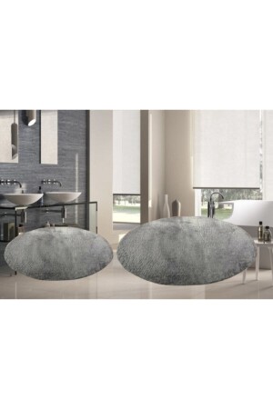 Lazer Kesim Peluş 2'li Oval Siyah Banyo Paspas Takımı
