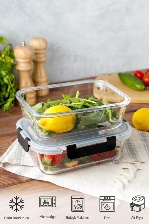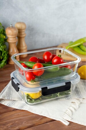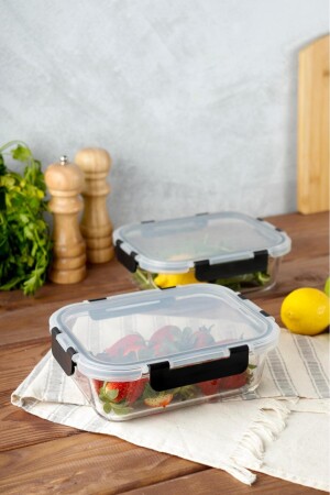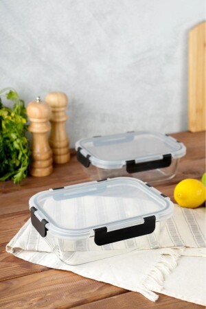 MNZ-2 قطع مستطيل Borosilicate Glass لا تتسرب حاوية تخزين مقفل - حاوية الفرن 2x1000 مل HMNV-2BOY-CAM-84422