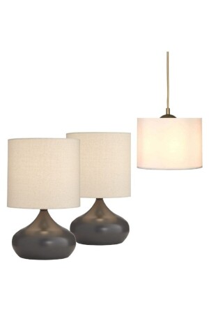 MNZ-2 قطع من مصابيح طاولة التخفيض المعدني مع قبعات من الأقمشة الكريمية، 1 قطعة من غرفة المعيشة الشنابل، 2 قطع من طاولة الت