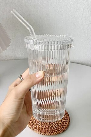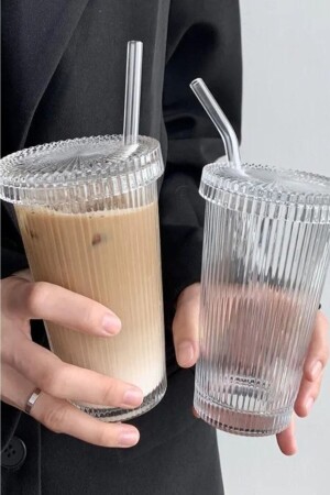 MNZ-2 قطع 400ml كوب زجاجي نمط مع الغطاء والقش