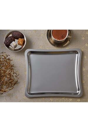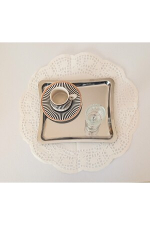 Paslanmaz Çelik Kare 6lı Aksesuarsız Çay Kahve Sunum Tepsisi