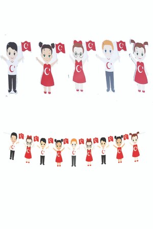 MNZ-23 أبريل الأطفال المبتهجين يحملون اليدين العلم الديكوراتي 23 أبريل يوم الأطفال تزيين المدارس المنزلية