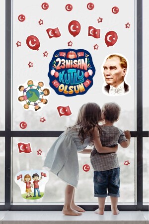MNZ-23 أبريل يوم الأطفال أططورتورك زجاجي ديكورات الجدار 29 قطعة المدرسة رياض الأطفال الملصقات الملصق مجموعة