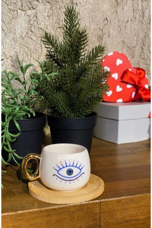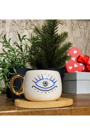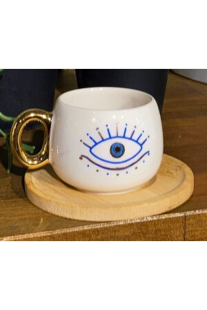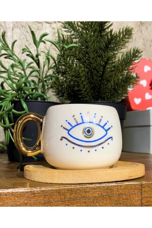 MNZ-24 كيراط ذهبية مطلية، عيون شريرة مصورة، مصنوعة يدويا، كوب قهوة تركية 90 مل 5034357852109