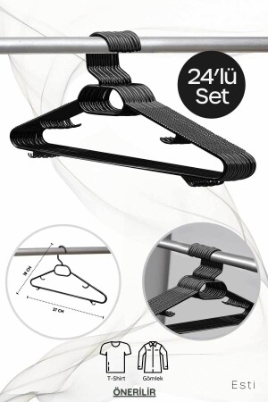 MNZ-24 ملابس بلاستيكية سوداء معلقة مجموعة من 24