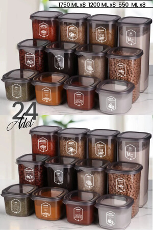 MNZ-24- Piece مدرجة مربع مخزن الطعام مجموعة x8 ((550ml-1200ml-1750ml) وعاء مع غطاء صلب MCH09175