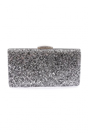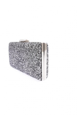 Kadın Yuvarlak Gümüş Taşlı Bilezik Aksesuarlı Abiye Clutch Portföy Çantası