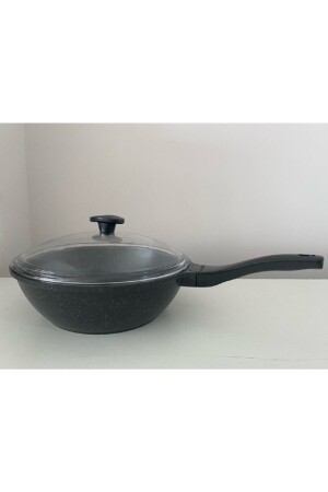 MNZ-28 Cm غطاء زجاج غرانيت معدني Wok Pan / Gray 005