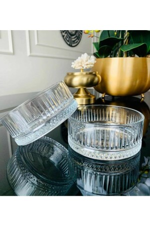 6'lı Cam Ayaklı Yaldızlı Şekerlik Lokumluk Sunumluk