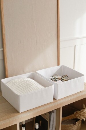 مقياس منتج MNZ-2 White Storage Box Organizer 28x28x13 سم (الربع x العمق x الارتفاع) يساعدك على إنشاء النظام في منزلك ومكتبك مع صن