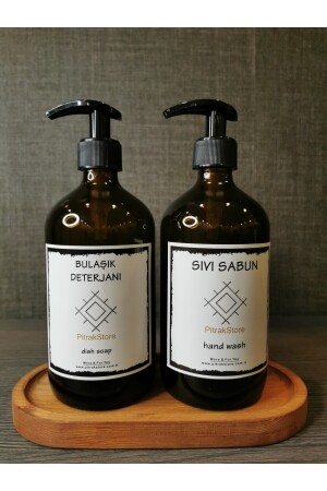MNZ-PitrakStore اوفال 2 قطعة أمبر زجاجي سائل صابون مصفف صمام الأطباق غسل القنينة السائلة مع قفزة خشبية محتويات الم