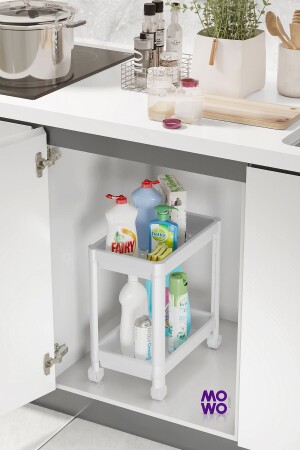 MNZ-2-Tier Wheeled Organizer Shelf White - غرف حمام - مخزن المطبخ و تحت الغسالة - حامل للمطهر