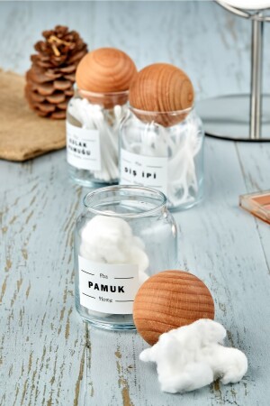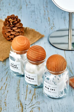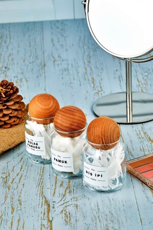 MNZ-3 حزمة كرة خشبية غطاء أسنان فلوس & القطن Bud & القطن منظمة 300 مل جار القطن حامل