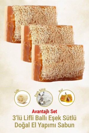 MNZ-3 حزمة من الألياف العسل حليب الحمار الصابون المصنوع يدويا 3x120 جرام - حليب الحمار SET3LUSABRBA