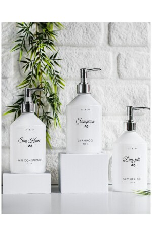 3lu Amber Çiçekli Şampuan Duş Jeli Ve Saç Kremi Etiketli Plastik Şişe 500 Ml