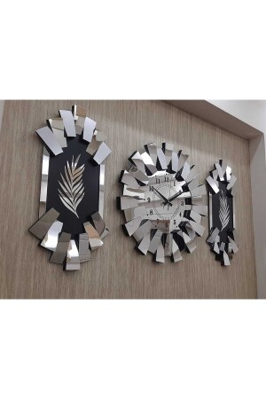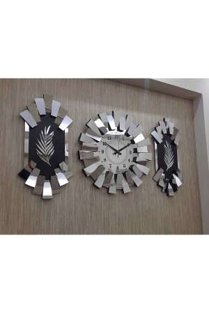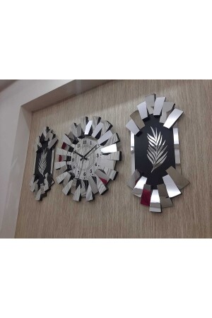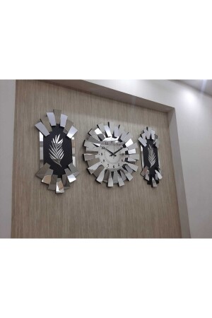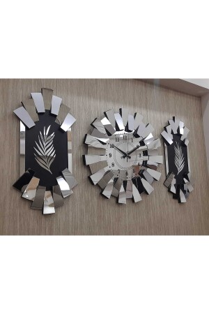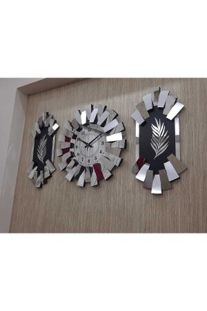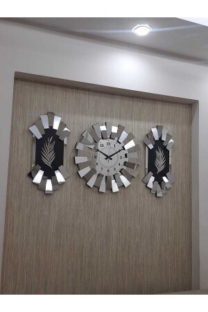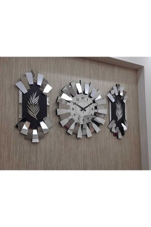 ساعة الجدار 3 قطعة MNZ وديكورات الجانب 3 أبعاد لون الفضة فاخر 3 أبعاد النموذج البيانو ساعة 3 سم سم سميكة مرآة