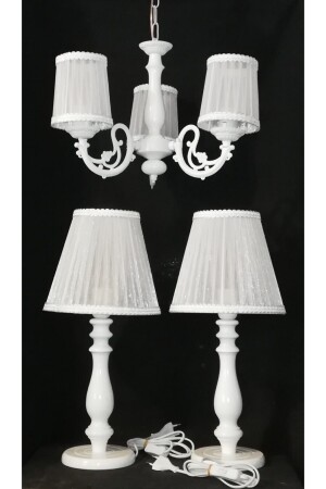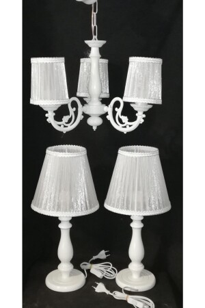 MNZ-3-piece WHITE BEDROOM CANDELIER LAMPSHADE SET LAMPSHADE HEight: 48 CM 2 LEG WHITE WOODEN CANDELIER BODY
