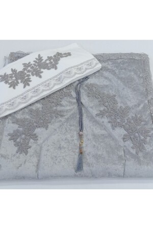 3 ADET Fransız Güpürlü İşlemeli Kadife Çeyizlik Gelin Seti Seccadesi