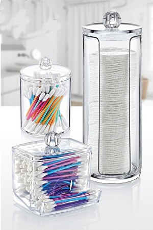 3'lü Diamond Makyaj Pamukluğu Kulak Çubuğu Düzenleyici - Kapaklı Kozmetik Organizer Saklama Kutusu