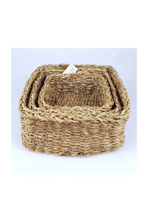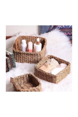 Hasır Sepet- Çok Amaçlı 3lü El Yapımı Organize Sepet