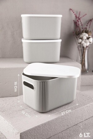 MNZ-3 قطع التخزين 6lt غراي منظمة التخزين الصندوق لعبة هواية الصندوق الديكورية مع الغطاء BAYEV-DZNLYC1