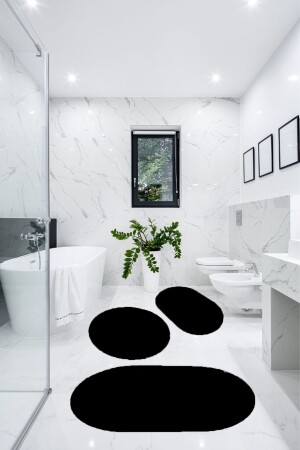 MNZ-3- Piece حمام السجادة المطبخ البيضاوي بلوش مقعد المرحاضة مجموعة سوداء 60x90 ((ELIPS)-50x60 ((ELIPS)-60x60 ((R