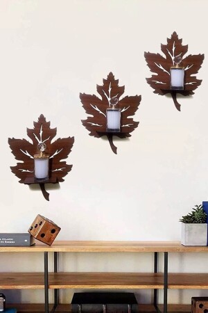 MNZ-3- Piece خشبية ديكورات الجدار رف طائرة حامل شمعة ورقة
