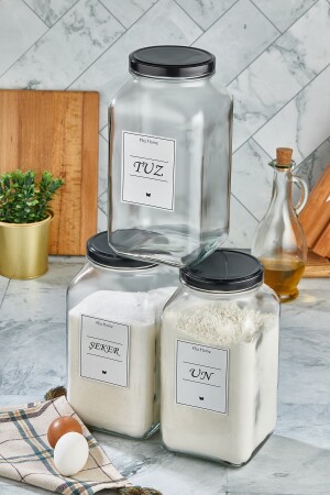 MNZ-3- Piece ديكوراتي المطبخ منظمة الملح - السكر - الدقيق الجار الزجاجي تخزين الغذاء (3000cc) FBZ-K3000-CC