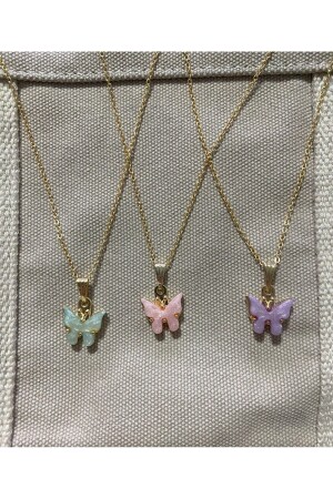 MNZ-3- Piece رقبة الصداقة فراشة مجموعة رقبة أفضل الأصدقاء رقبة فراشة ألوان الـ Aqua أخضر-Lilac-Pink