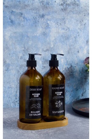 2'li Amber Cam Sıvı Sabunluk Mutfak Bulaşık Deterjan Şişesi 500ml AMENSABUN