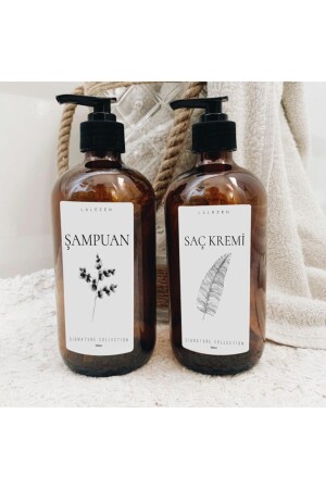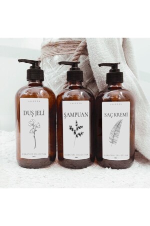 3lu Amber Çiçekli Şampuan Duş Jeli Ve Saç Kremi Etiketli Plastik Şişe 500 Ml