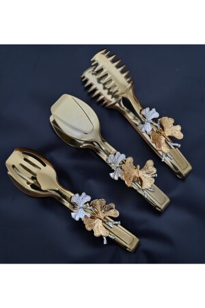 MNZ-3- Piece Gold Butterfly Tongs Serving Set DNC155