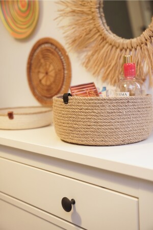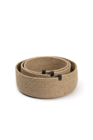 MNZ-3- Piece Jute Shallow Wicker Basket ، 100% مصنوعة يدوياً ، Wicker ، Jute ، القطن ، Vegan OpiaKPS31